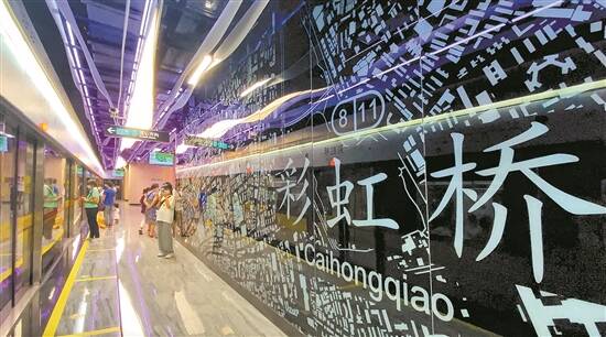 广州地铁又添新“景点”。9月28日6时起,八号线彩虹桥站正式开通运营,A、C、D三个出入口同步投入使用。记者探访看到,彩虹桥站内部既“高”又“大”,既有颜值又有文化。