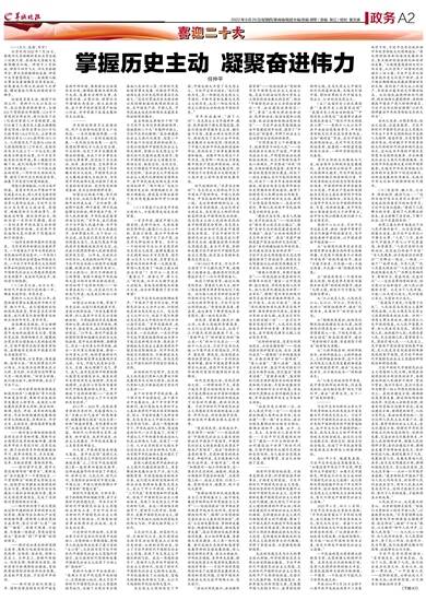 又踏层峰辟新天,更扬云帆立潮头。坚持用习近平新时代中国特色社会主义思想武装头脑、指导实践、推动工作,以思想的力量激扬奋进的力量,以理论的主动把握历史的主动,我们就一定能在新的长征路上跨越万水千山,夺取新的更大胜利。