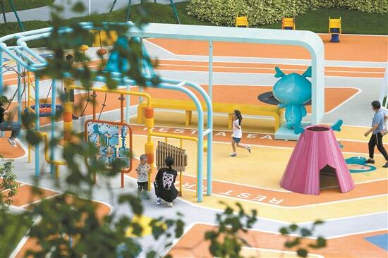 龙湖揽境已经收楼的业主在可爱的儿童区玩耍