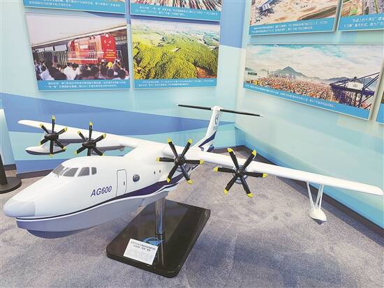 上半部分是飞机、下半部分为船形结构的AG600“鲲龙”模型无疑是广东单元最抢眼的展品之一。“它既是一艘会飞的船,也是一架会游泳的飞机,可以在陆地和水面上起降,主要用于森林灭火和海上救援。”展区相关负责人介绍,这台“诞生”于珠海的水陆两栖飞机与C919、运-20并称国产大飞机“三剑客”,是我国航空工业坚持自主创新取得的重大科技成果之一。