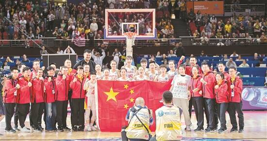 追平队史在世界杯最佳成绩的中国女篮队员们,赛后相互击掌鼓励,信心写在她们微笑的脸上。中国篮协主席、本届世界杯中国女篮领队姚明走到场地中央,与全队在五星红旗后合影,观众席上身穿红色T恤的中国球迷,高举挥舞着一面面五星红旗,与场地中的女篮队员们构成了一抹难忘而动人的“中国红”。
