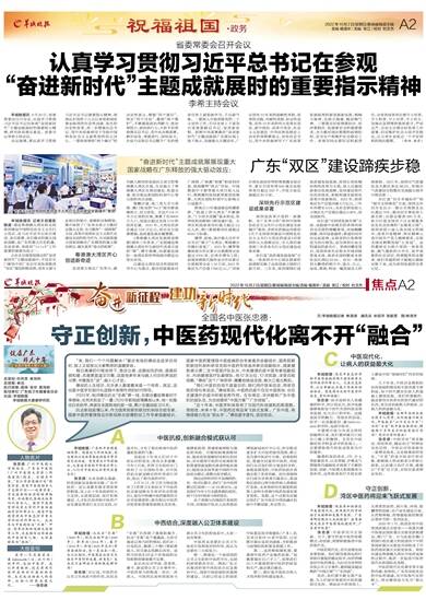 羊城晚报:现在要加快推进中医药现代化,要用现代科学的语言来阐释和发展中医药。广东有哪些敢为人先的探索?在粤港澳大湾区中医药高地建设中,广东有何优势?