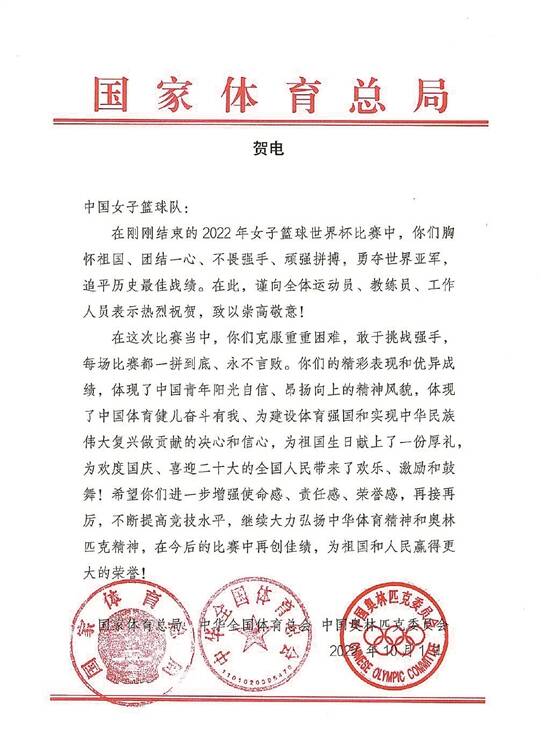 这是中国女篮获得的第五枚世界大赛奖牌,也是第三枚世界杯奖牌,此前两枚分别是1983年的铜牌和1994年的银牌。在奥运会上,中国女篮也曾两次站上领奖台,分别是1984年的铜牌和1992年的银牌。
