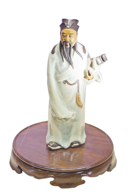 清末民初石湾窑陈渭岩制青釉俞伯牙陶塑像