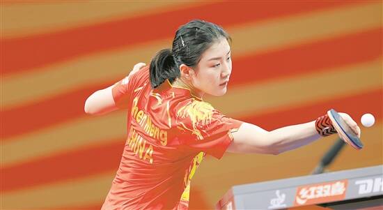 2日,中国队选手陈梦在比赛中回球,她以3比0战胜波多黎各队选手丹妮尔·里奥斯 新华社发