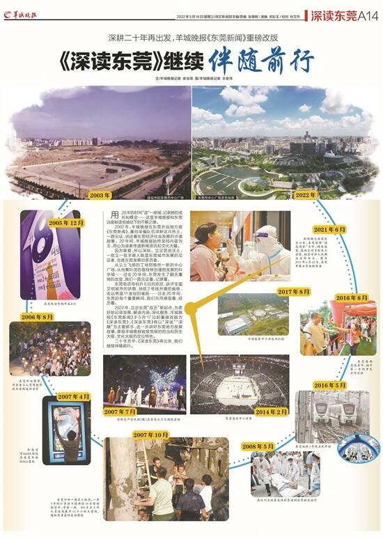 2002年,羊城晚报《东莞新闻》(2022年升级为《深读东莞》)创刊,集结专业采编队伍扎根东莞,记录这座城市的成长和蝶变。过去十年,恰好是羊城晚报在东莞开设地方版面的第二个十年。羊城晚报立足莞邑沃土,一路见证、记录着这座城市的每个重要节点,讲好东莞地方发展故事,展现羊城晚报省级党报的担当和民生大报、文化大报的定位特色。从地铁2号线开通的第一趟列车,到“国之重器”中国散裂中子源的投入运行……过去十年,东莞的每个重要瞬间,羊城晚报都在现场同脉搏共体验。