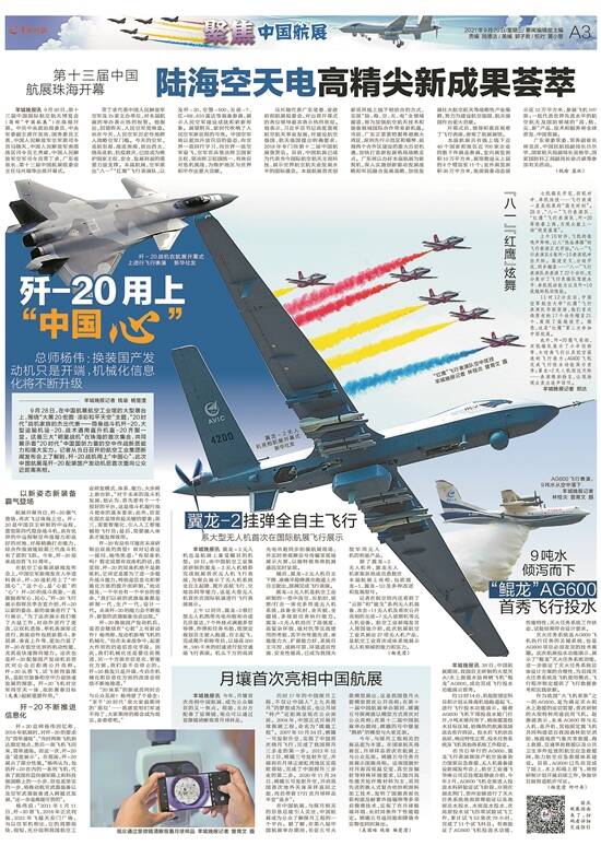 国产航空发动机的研发、察打一体无人机的进步、我国三大飞机的面世、歼20从惊鸿一瞥到装上“中国心”……中国航展已跻身全球五大航展之列,已成为中国向世界展示航空航天大国魅力的一扇窗口、一张闪亮的“国家名片”,也是珠海城市形象的重要组成部分。