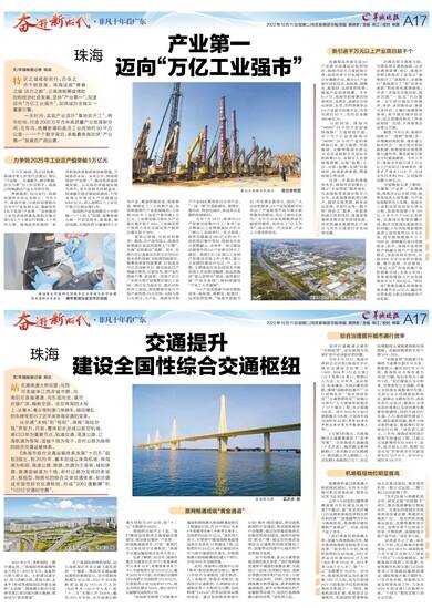 珠海的目标不止于此。“我们继续加快推进交通基础设施建设,谋划建设服务‘产业第一’的战略通道项目,打造一批现代化立体化综合交通枢纽。”珠海市交通运输局相关负责人表示。