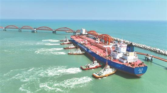 广东石化项目首艘30万吨级原油油轮顺利到港 吴松深 摄