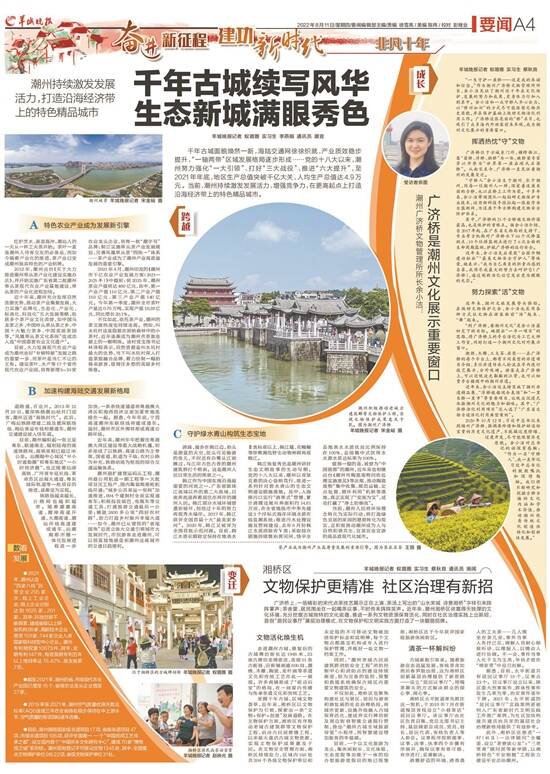 从宏观到微观,从社会到个人,十年中,羊城晚报通过多个重大报道见证潮州努力打造特色产业发展高地、文化强市建设标杆、中小城市美的典范、全域现代治理样板,记录下新时代的“潮州加速度”。