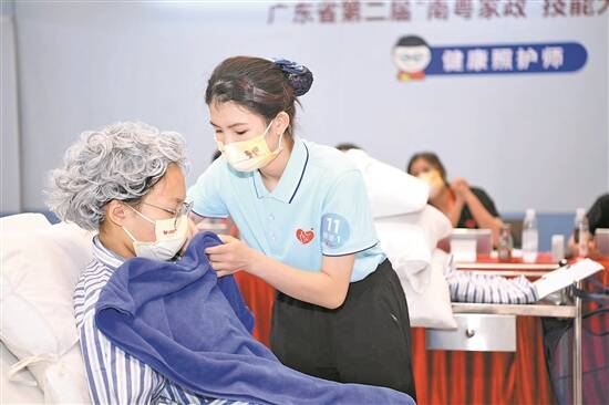 广东省第二届“南粤家政”技能大赛总决赛健康照护师项目比赛现场(资料图片)