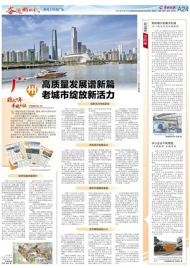 在新时代新征程上,广州老城市绽放出新活力、实现新作为,城市综合竞争力、辐射带动力、国际影响力大幅跃升,展现出更加光明的发展前景。