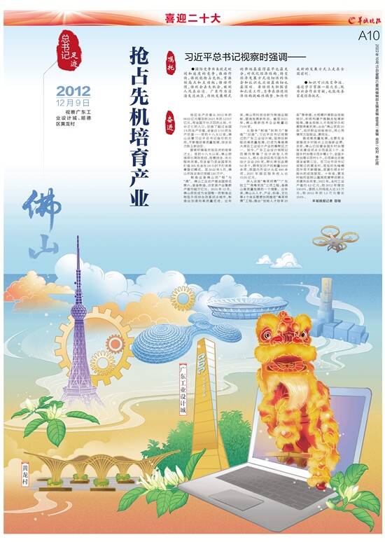 推进高质量发展,也要在全面推进乡村振兴上创造新业绩。目前,佛山已创建全国乡村治理体系建设试点示范县区1个、全国乡村治理示范乡镇2个、全国乡村治理示范村5个,示范单位总数居全省第三位。在习近平总书记视察过的黄龙村,党组织先锋模范作用不断增强,党建引领乡村振兴的成效显现。十年来,黄龙村始终坚持以基层党建带动群众共建共治共享,2021年,全村工业产值约4.2亿元,较2012年增加100.8%,居民人均纯收入达3.3万元,较2012年的1.3万元增长154%。