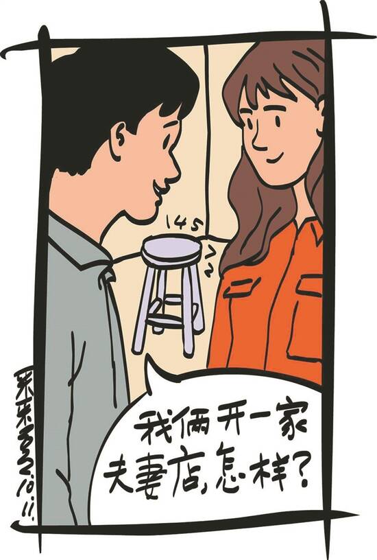 正当单峰决定关门停业时,冯路来了。她在店里转了一圈,说:“这房子确实有点小,但开彩票店正合适。你干吗出租啊?”单峰说:“我去彩票管理站咨询了,两个彩票店相隔不得少于300米。我们的店离得这么近,不符合要求。”单峰一拍脑门,“对了!我俩开一家夫妻店,怎样?”冯路顿时羞红了脸……(徐柱平)