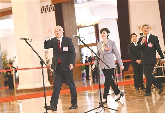王旭东、钱素云、谢春涛代表(自左至右)步入“代表通道” 新华社发
