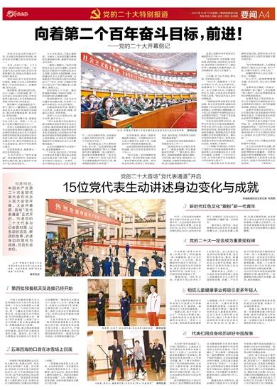 10月16日,中国共产党第二十次全国代表大会在北京人民大会堂开幕。大会开幕前,首场“党代表通道”正式开启。15名党的二十大代表与记者面对面,以生动的语言、鲜活的故事,讲述身边的变化与成就,回应社会关切。