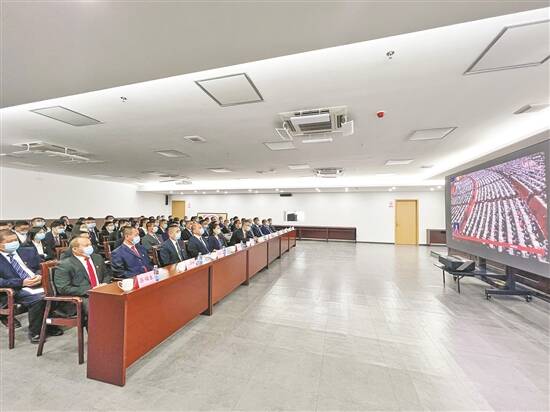 汕头华侨经济文化合作试验区组织集中收听收看开幕会直播 羊城晚报记者 蔡嘉鸿 摄