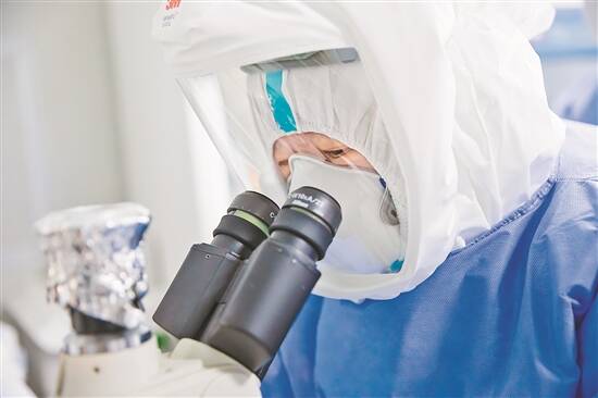 师永霞使用倒置显微镜观察细胞病变效应 关悦 摄