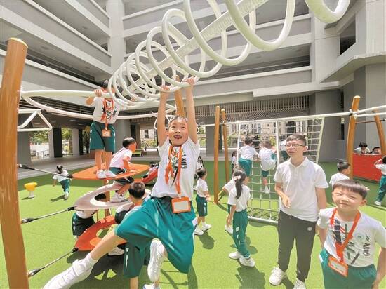 广东实验中学荔湾学校第二小学部的孩子们在参加体育锻炼