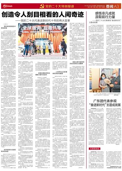 怀着激动的心情,代表们边走边看边思考,从中感悟伟大成就,汲取奋进力量。一件件实物模型、一段段生动视频、一幅幅图片图表,丰富多彩的展览要素生动诠释了十八大以来党和国家发展进程中极不寻常、极不平凡的十年,让大家深刻感受到新时代神州大地处处涌动着生机与活力。在广东单元,代表们驻足观看,听取讲解,询问有关情况,结合自己的工作和生活经历分享心得体会。大家一致认为,新时代十年,广东同全国一道如期打赢脱贫攻坚战,如期全面建成小康社会,各项事业取得一系列新进展新成效,这深刻印证党的十八大以来党和国家事业取得的历史性成就、发生的历史性变革,进一步增强了我们在总书记、党中央坚强领导下夺取中国特色社会主义新胜利的信心决心。