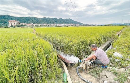 10月17日,广州市从化区鳌头镇,农户在冷空气来临前对晚稻田灌水,防御“寒露风” 梁怿韬 摄