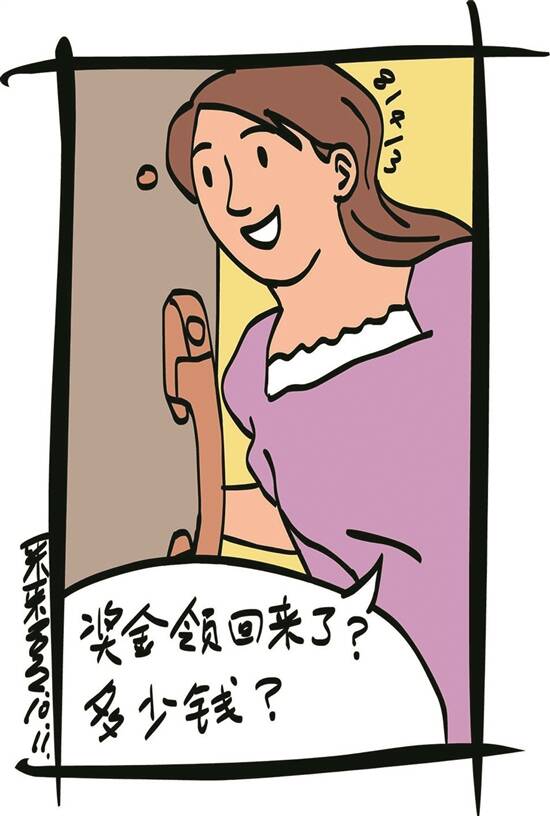 周倩听到楼梯口那熟悉的脚步声时,心急如焚地冲过去打开门,问道:“奖金领回来了?多少钱?”老刘呵呵一笑:“1000元。”周倩怀疑自己听错了:“不是说一等奖吗,才1000元?”