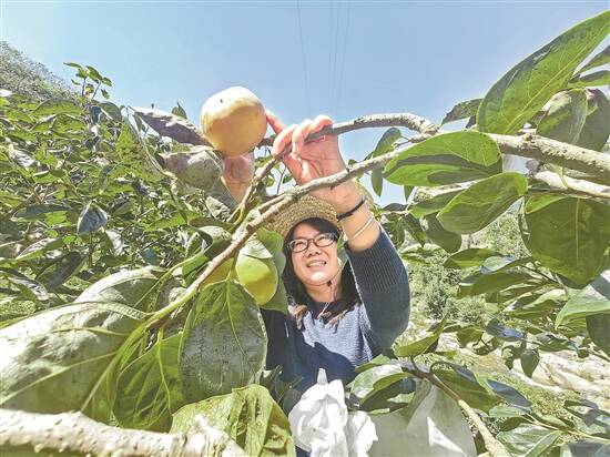 村民采摘甜柿露笑容