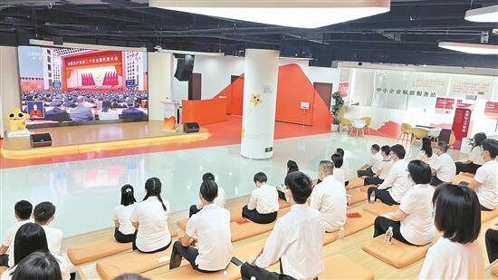 黄埔区、广州开发区中小企业党员代表收看党的二十大开幕会直播 羊城晚报记者 郭思琦 摄