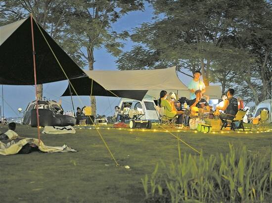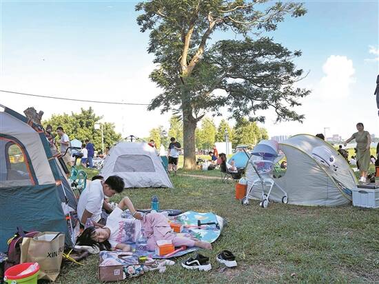 国庆长假的每一天,这里草地上一个接一个都是帐篷,大人在喝茶、聊天,孩子们在雕塑作品间追逐玩耍,欣赏城市内外的水光山色,享受惬意的午后时光,在秋日绘就一幅幅富有生机的画卷。