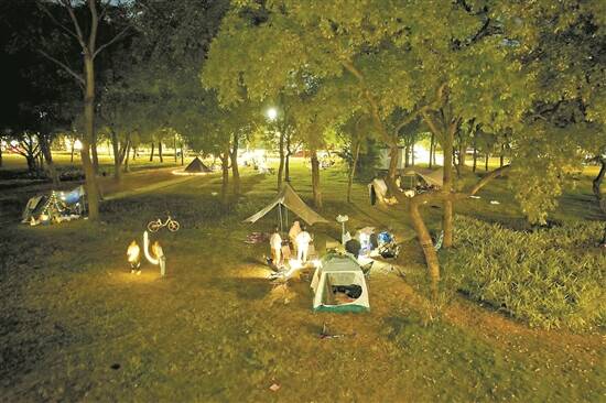 二沙岛内,已近午夜,露营的人们还恋恋不舍 斌桐 摄