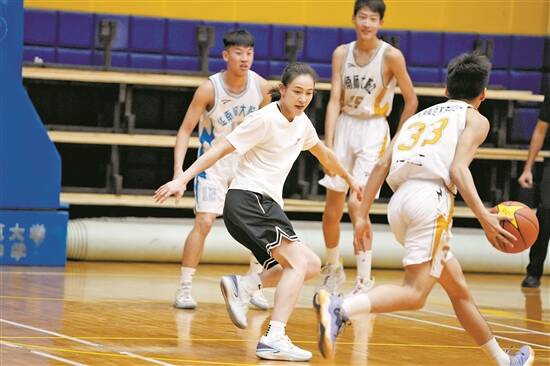 随后,女篮队员与同学们一起进行了专业的赛前热身训练,并现场为学生辅导了投篮、上篮、传球、运球、接球等技术。活动最后,女篮队员与学生们共同组队进行比赛。