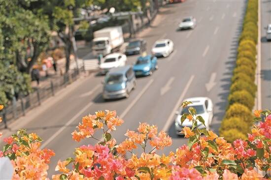 羊城晚报讯 记者秦小杰摄影报道:10月,广州的大街小巷、人行桥、高架桥上,簕杜鹃姹紫嫣红,一座座绚丽多彩的空中花廊,像是为城市披上了一条条鲜艳的彩带,红的、紫的、黄的、粉的……竞相绽放。广州摇身成为一座立体园林,抬眼可见“车在花中走,人在花间行”的亮丽城市风景线。