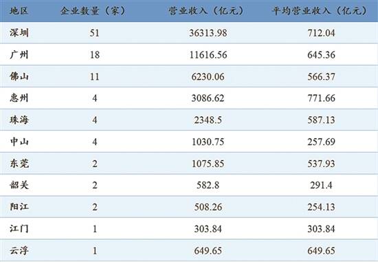 各城制造业百强企业效益如何?根据榜单数据,深圳、广州上榜企业的营业收入分别为36313.98亿元、11616.56亿元,两城营收总额超过总体营业收入的四分之三;惠州、深圳、云浮、广州、珠海五城的上榜企业平均营收位居前五,分别为771.66亿元、712.04亿元、649.65亿元、645.36亿元、587.13亿元。