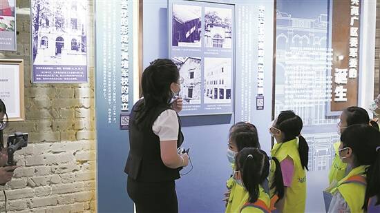 这一天,羊城晚报学生记者们的研学之路从万福路190号开启,这座富含岭南韵味的古朴骑楼是当年周恩来同志主持的中共两广区委军委旧址。穿行于展厅之间,这群小小羊城少年的注意力被“星火燎原主题展”所吸引,图文并茂的展示仿佛开启了一条时光隧道,将学员们带到那个风云变幻、热血沸腾的年代。讲解员耐心细致的讲解为学员们更好地了解动荡年代里的往事提供了机会,从中共两广军委区委的诞生到为探索建立军事机制作出的最初尝试,从开展国民革命运动到与国民党右派斗争中贡献的力量……厚重的历史是用先辈的血泪铸成的,是无数追崇共产主义的革命志士奋勇斗争的结果,在场学员无不为先辈的拳拳赤子心而动容。