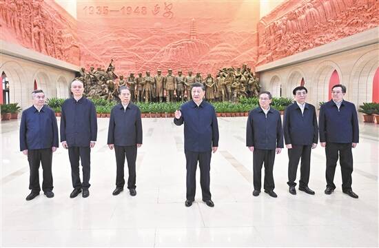 随后,习近平等集体乘车前往延安革命纪念馆,参观《伟大历程——中共中央在延安十三年历史陈列》。