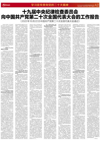 中国共产党第十九次全国代表大会以来,在以习近平同志为核心的党中央坚强领导下,中央纪委国家监委和各级纪检监察机关全面贯彻习近平新时代中国特色社会主义思想,准确把握党中央全面从严治党战略部署,坚守党的初心使命,弘扬伟大建党精神,深刻领悟“两个确立”的决定性意义,增强“四个意识”、坚定“四个自信”、做到“两个维护”,认真贯彻党的十九大和十九届历次全会精神,忠实履行党章和宪法赋予的职责,坚定不移正风肃纪反腐,推动纪检监察工作高质量发展,充分发挥监督保障执行、促进完善发展作用,为胜利实现第一个百年奋斗目标、向第二个百年奋斗目标进军提供坚强保障。现将五年来工作情况和今后工作建议向党的第二十次全国代表大会报告,请予审查。