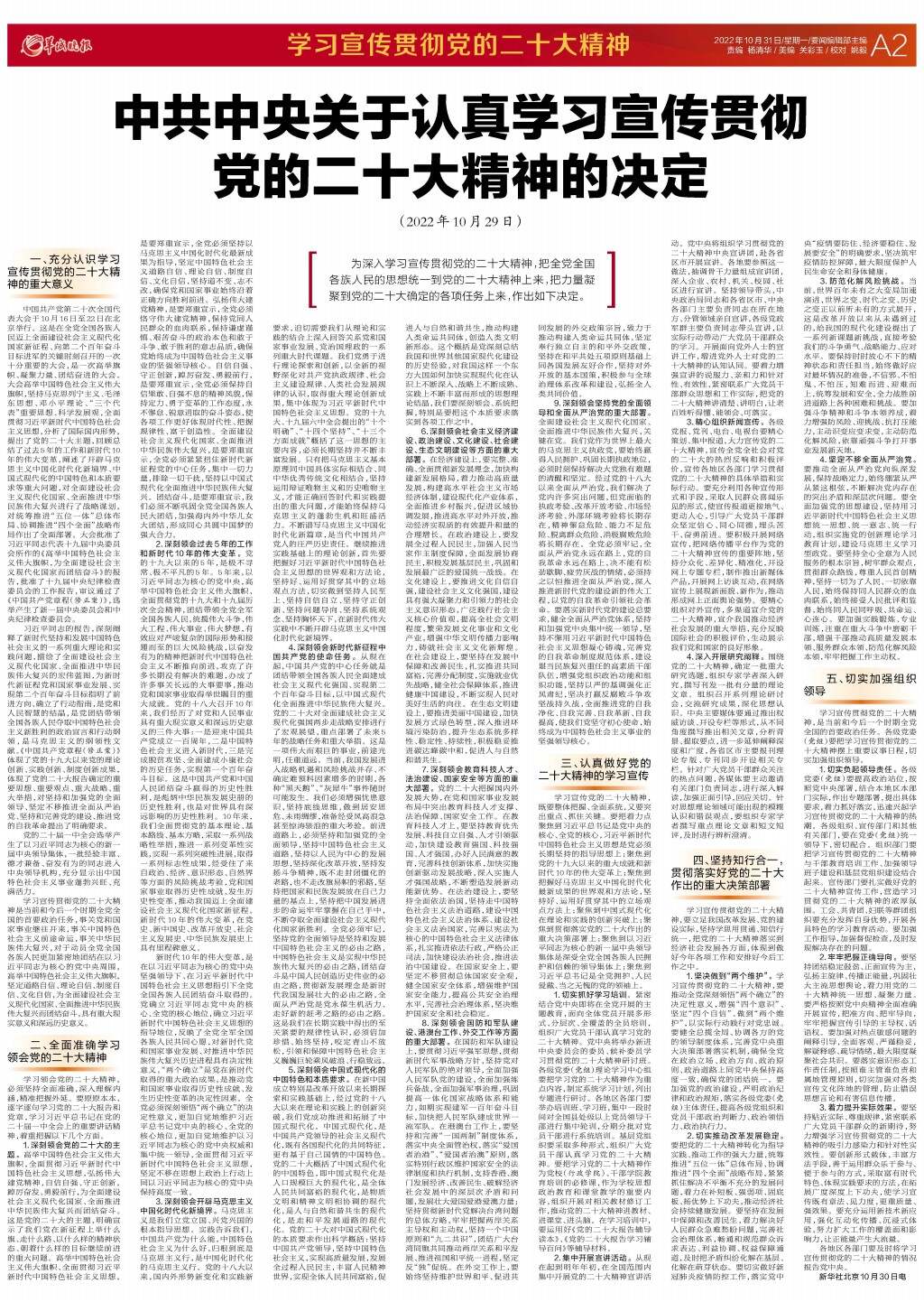 中共中央关于认真学习宣传贯彻党的二十大精神的决定