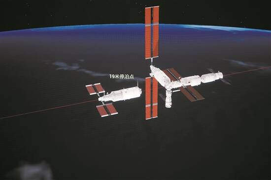梦天实验舱从19米停泊点向天和核心舱前向端口靠近的模拟图像 新华社发