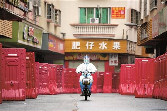 “这袋是加急的,记得先送。”11月2日中午11时许,均禾街罗岗村十一社临时医疗保障点门口,护士将装着药品的袋子递给蒙成树后叮嘱道。蒙成树拎起袋子,快速扫了一眼上面写的地址,在脑海中搜索位置,然后骑上电动车,选择一条最近的路线,飞驰在水马围蔽区外的道路上,以期将药品尽快送往目的地。