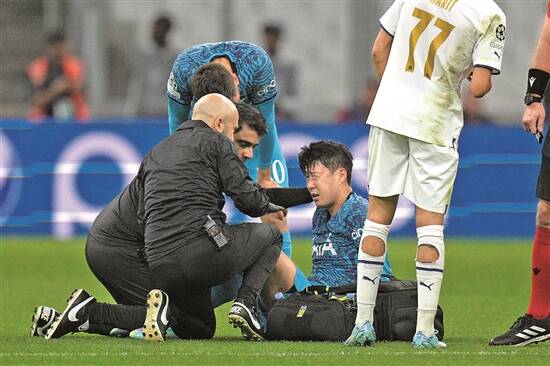 孙兴慜(中)疑似脑震荡伤退 图/视觉中国