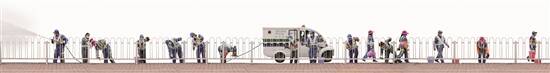 《给栏杆做清洁的工人们》 受访者提供