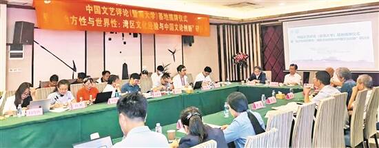 日前,中国文艺评论(暨南大学)基地揭牌暨“地方性与世界性:湾区文化经验与中国文论创新”研讨会在广州举行,包括中国文艺评论家协会副秘书长袁正领,中国作协副主席吴义勤,广东省文艺评论家协会主席、中山大学教授林岗等来自全国各地的40多位专家学者通过网上或网下的形式与会展开讨论。会议由广东省作协主席、暨南大学教授蒋述卓主持。以下为部分发言摘要——