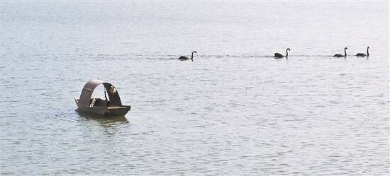 深秋的广州,天气不冷不热。麓湖的水面上,一只没有系好的船漂了过来。船边几只黑天鹅划水而过,小篷船在风的吹动下转了个圈,仿佛要跟上天鹅的队伍……