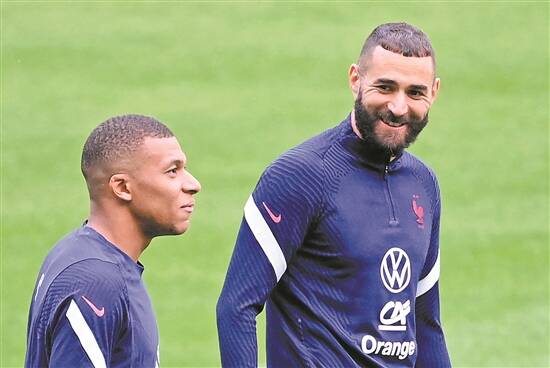 本泽马(右)与姆巴佩领衔法国队豪华锋线 图/视觉中国