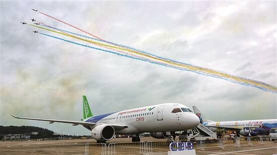 第十四届中国航空航天博览会正在珠海举行。在此次航展上,国产大飞机“三兄弟”运油-20、C919、AG600M震撼亮相,先后进行飞行表演。国产大飞机“三兄弟”比翼齐飞的梦想,在航空人的接续奋斗中成为现实。