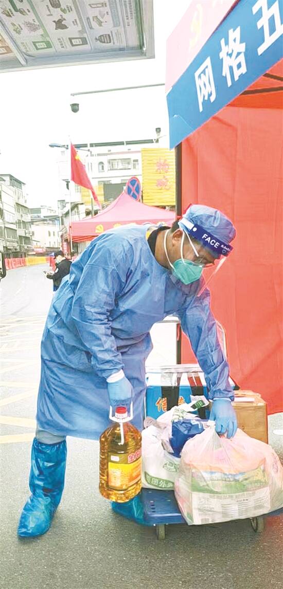 黄学俊在管控区内配送居民生活物资