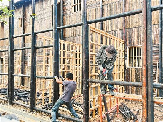 工人正在制作竹屋