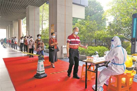 11日,海珠区滨江街道,市民排队进行核酸检测 羊城晚报记者 宋金峪 摄