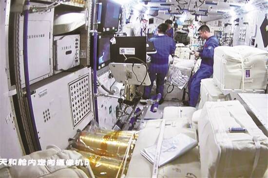 11月12日,在北京航天飞行控制中心拍摄的天舟五号货运飞船与空间站组合体完成自主快速交会对接后天和核心舱内的情况