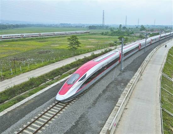 11月9日,印尼万隆德卡鲁尔车站。一辆带有宝石红涂色的高铁列车缓缓启动,标志着雅万高铁试验段接触网热滑试验全面展开。雅万高铁项目自2016年正式启动以来,在两国元首关心下顺利推进,已成为共建“一带一路”的标志性项目。项目建成后,雅加达到万隆的旅行时间将由现在的3个多小时缩短至40分钟。